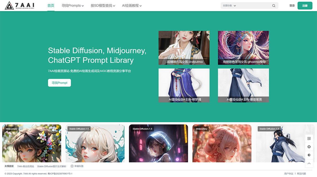7AAI绘画资源站,免费的AI绘画生成词及AIGC教程分享平台,分享AIGC教程资源以及AI行业资讯。